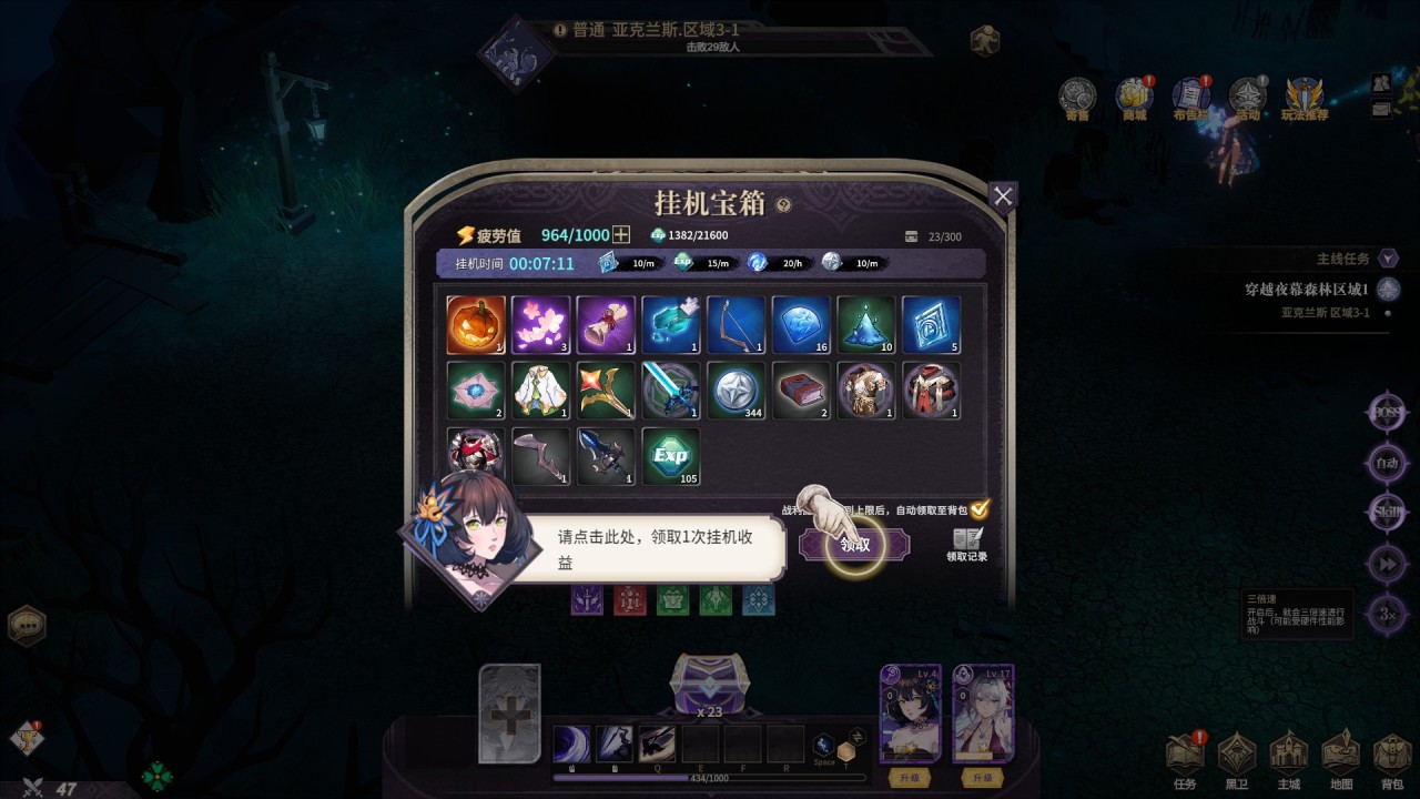 我們可以像上訴的那樣,當做掛機遊戲:自動尋敵,自動繼續探索關卡,一鍵上裝,一鍵脫裝,一鍵領取獎勵等大幅減少操作負擔。