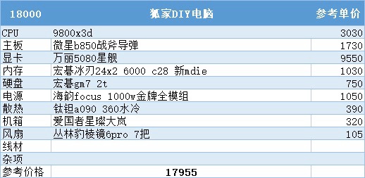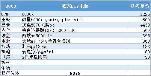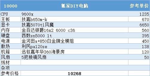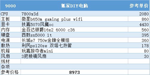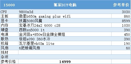這個價位我依舊準備了兩套,第一種上到一個7800x3d加5070主打網遊