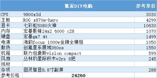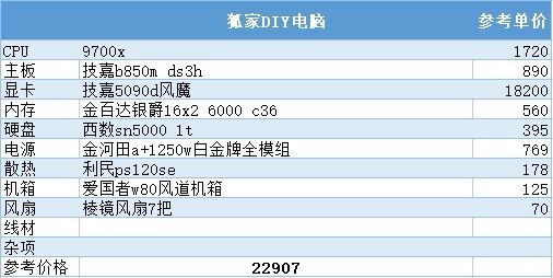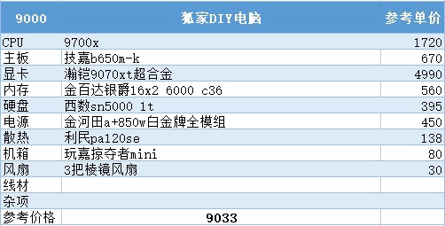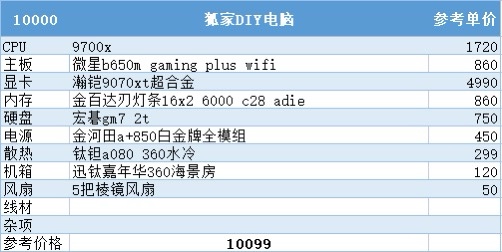 更加平衡一些的搭配法,97x加9070xt全套拉滿的配置,如果預算充足可以選擇海韻之類的好一點的電源,a卡比較喫電源
