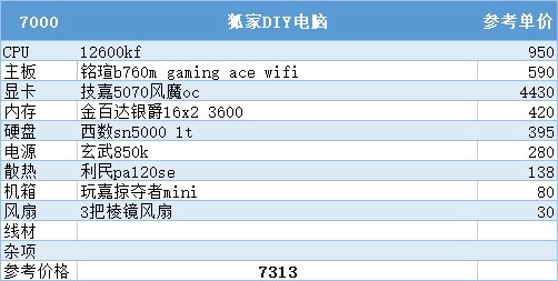 這應該是5070第一次出現在7000這個價位吧,不過爲了保證全套不丐還是超了點