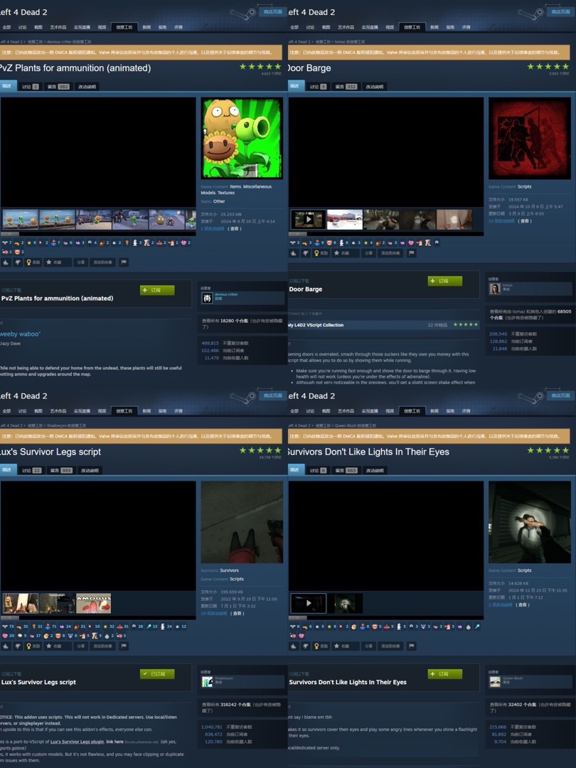 求生之路2:pvz模型、撞门动作、更大的视角、枪支手电筒