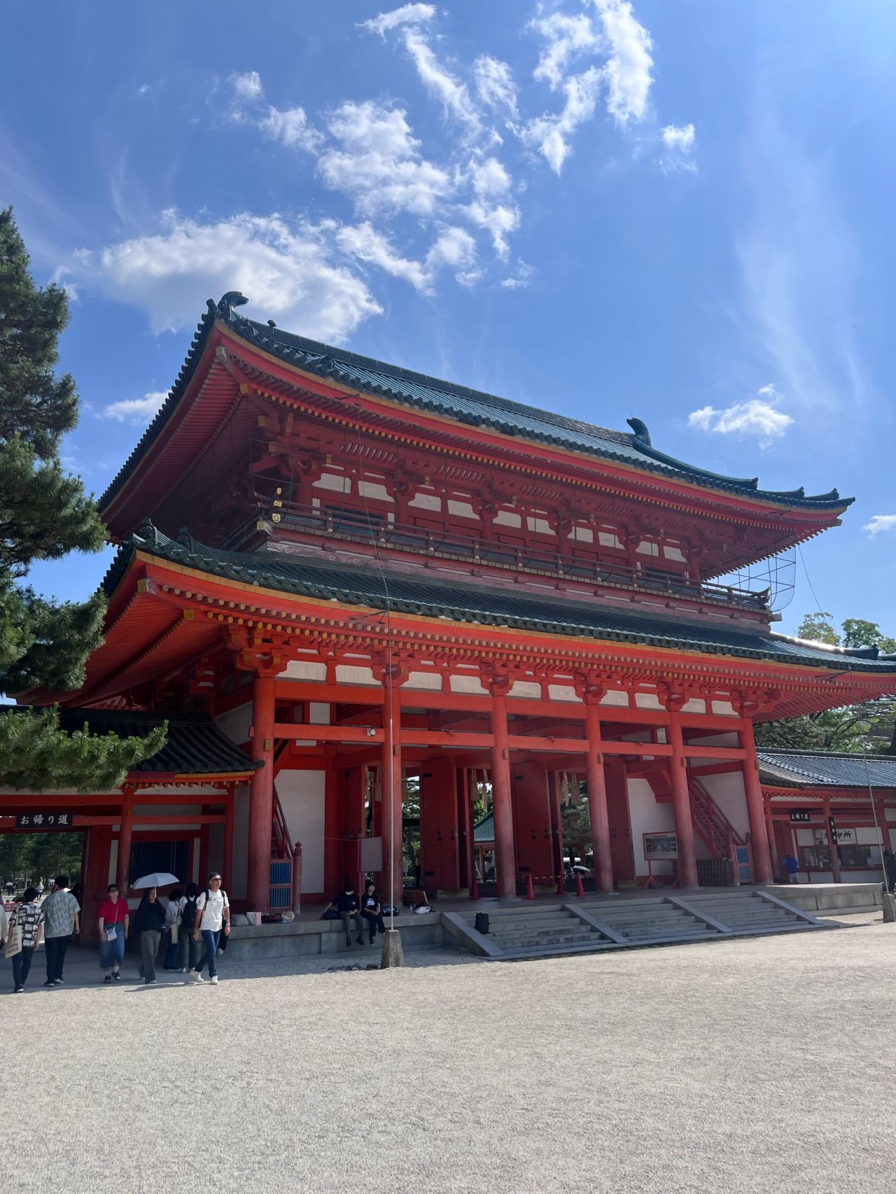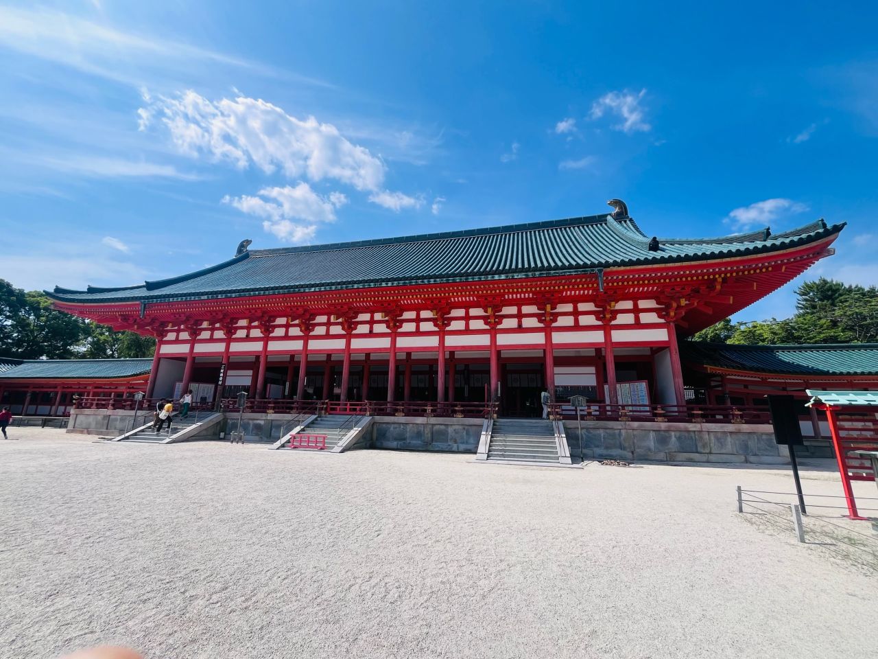 神殿是平安时代以天皇居住的 皇宫正厅 ——朝堂院的八分之五规模再现而成。至今还保留着 平安京被造 时的气氛。