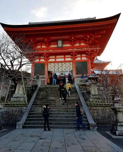 游览清水寺,要从名叫 “仁王门” 的正门进入,仁王在日本佛教中的 地位相当于金刚 ,一般被供奉在寺庙门口守护佛门,清水寺仁王门门的仁王像高约4米,是京都 最大的仁王像之一 。