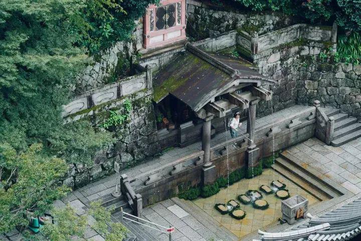 清水寺中有一处小屋,屋中设有三根流淌清泉的 水草 ,又叫 羽音瀑布 ,这里又被称作日本第一泉。