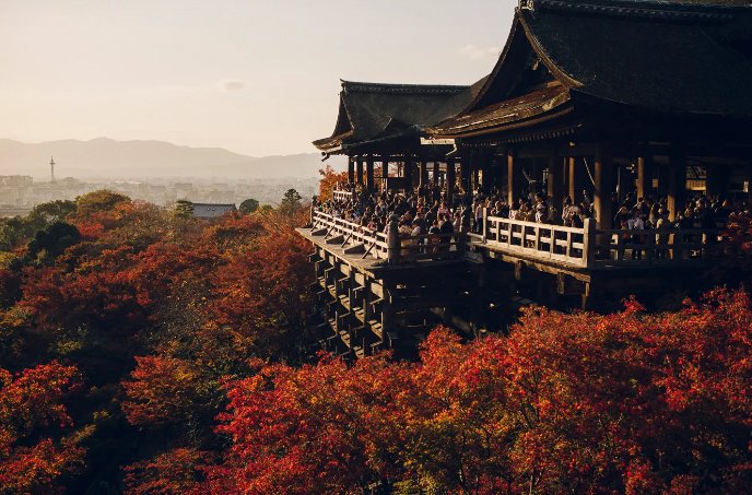 清水寺最出名的要属 悬空清水舞台 ,站在可以眺望京都街道,将半个京都 尽收眼底。