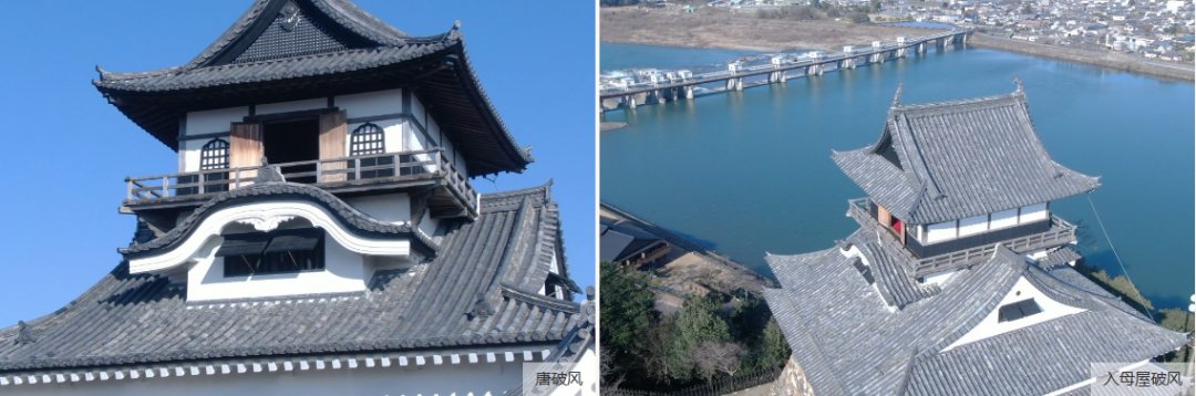 一般认为 唐破风 比 入母屋破风 更具有装饰性,对于北侧的美浓和南侧的本国来说是一种 权威的代表 。
