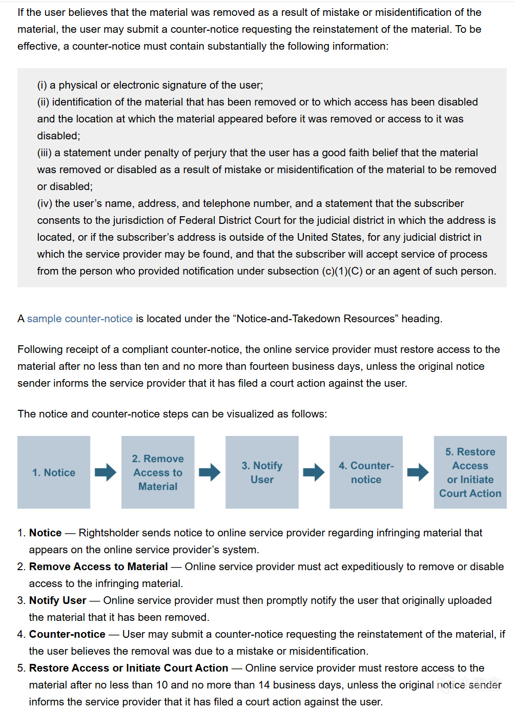 這裏貼上原文,方便大家查證。實際上,DMCA對舉報材料是有要求的。