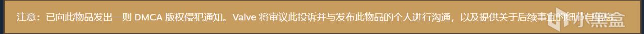 “Valve 將審議此投訴並與發佈此物品的個人進行溝通”,也就是說出現黃信只能說明這個mod有人利用DMCA向steam舉報了該mod,不等於該mod會下架。