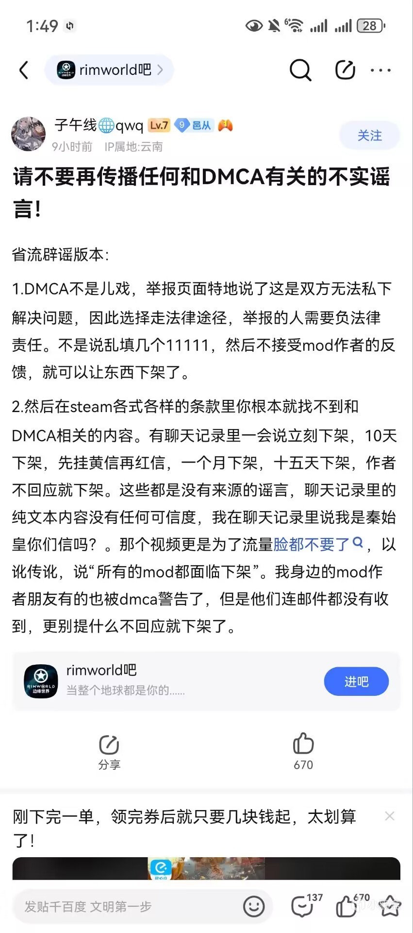 今天,一條消息迅速傳遍了單機遊戲圈,大概內容如下:任何steam用戶都可以利用DMCA舉報創意工坊mod,舉報內容隨便填,並且只要作者不自證,那麼mod就會下架。