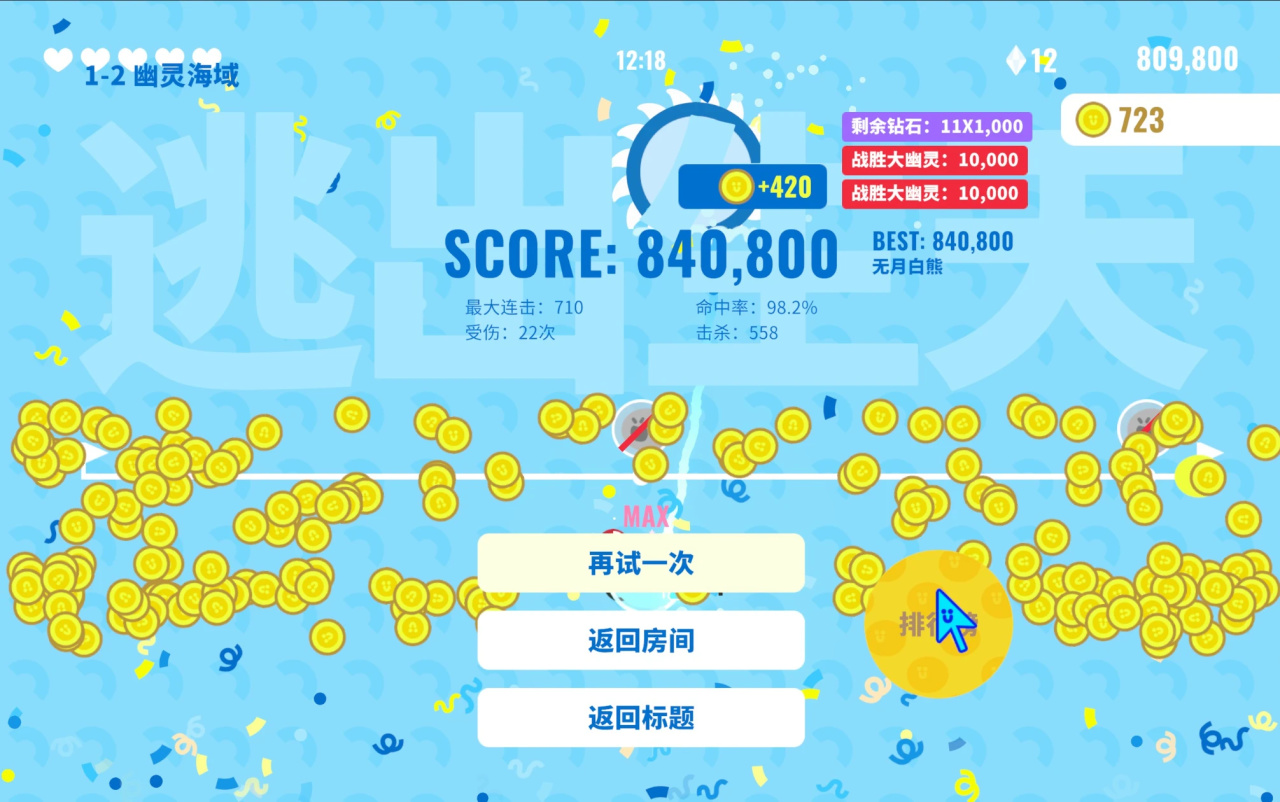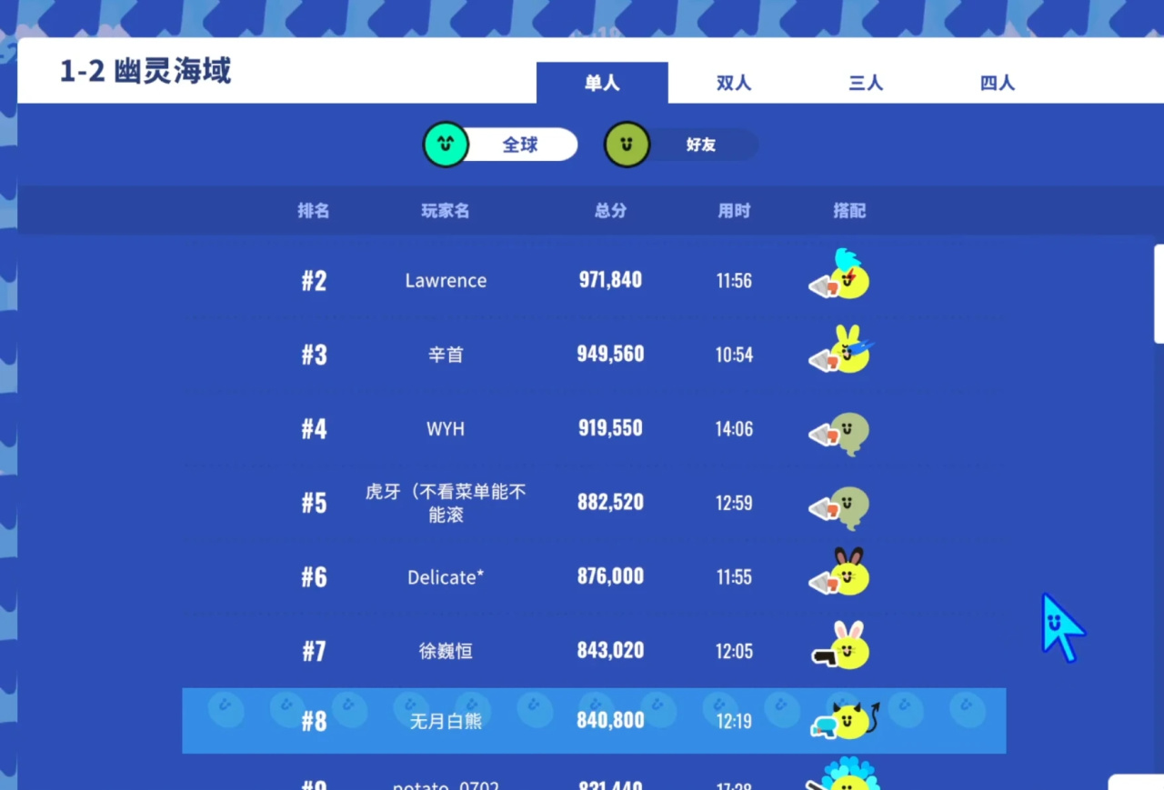 我在1-2幽灵海域,首次尝试,就拿到了840800分!属于是非常简单易上手了!