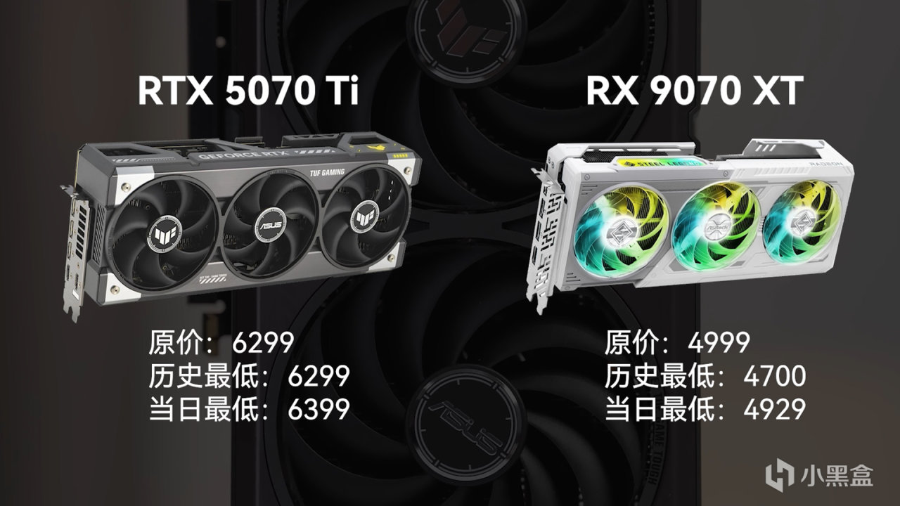 那结合目前两张显卡丐版的价格来看,9070XT的价格已经破发,反观5070Ti依旧有溢价的情况,可见9070XT的性价比是颇为的高,当然,大家也可以参考历史最低进行选择。