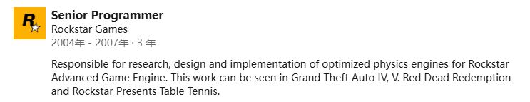 埃沃特于2025年2月加入顽皮狗,担任高级物理程序员一职。这位开发者在Rockstar Games工作期间(2004-2007年)曾参与多款经典游戏的物理系统开发,包括《GTA4》《GTA5》《荒野大镖客》工作室被低估的乒乓球游戏。