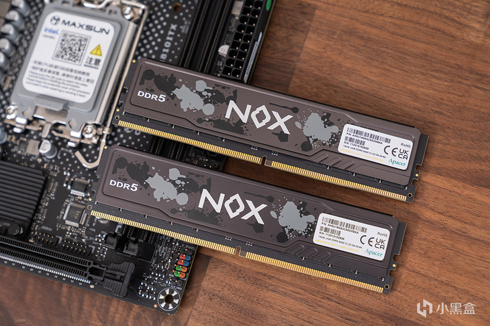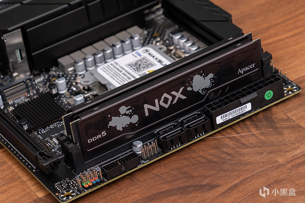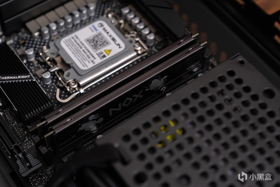 搭配使用了宇瞻 暗黑马甲 DDR5,内存颗粒为镁光颗粒,XMP 频率则为 6400,时序 32-38-38-84,电压1.2V,搭载 PMIC 电源管理晶片及 ONE-DIE ECC 内存纠错机制,支援 Intel XMP3.0 轻松一键超频。