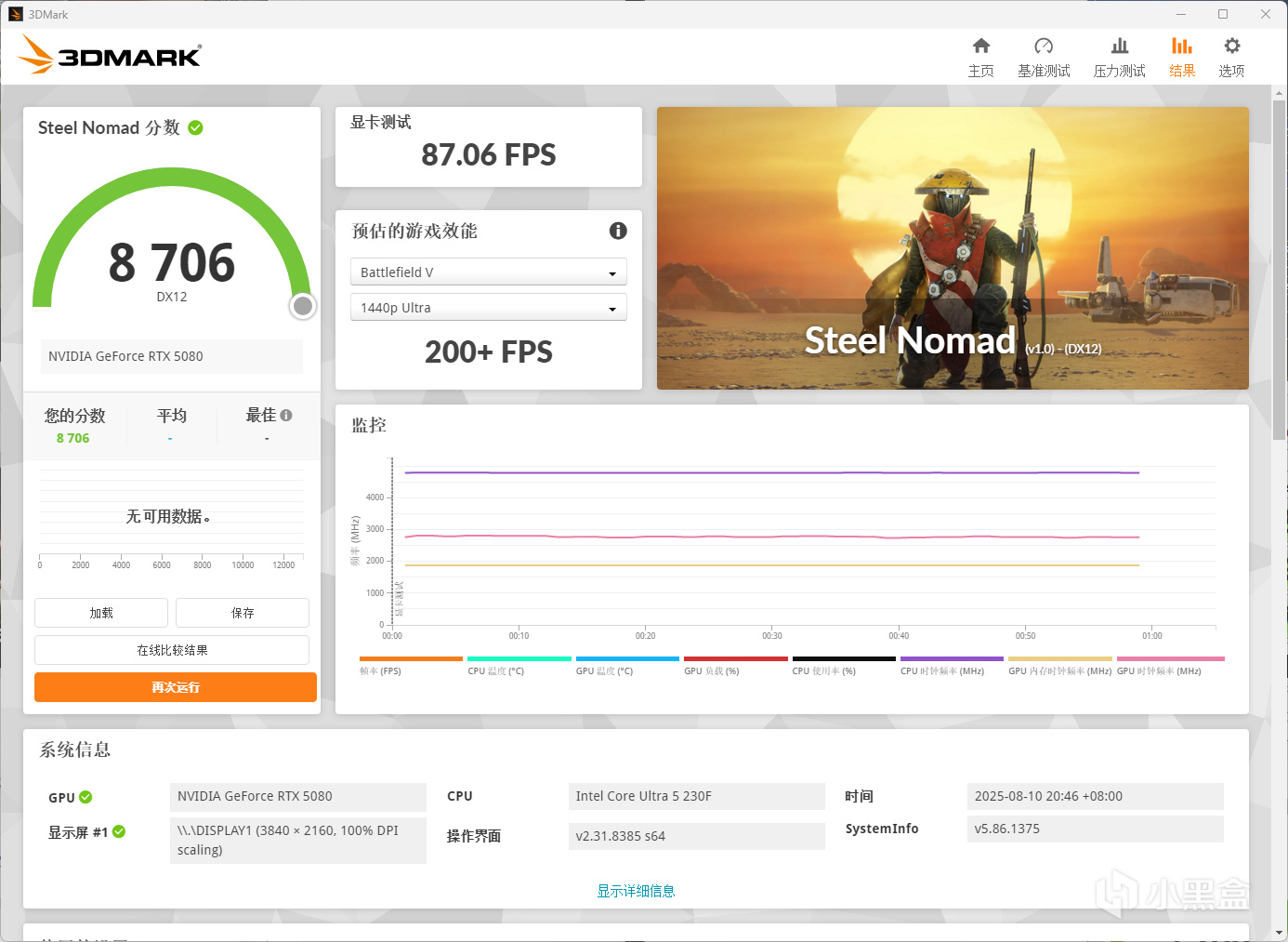 3DMARK显卡测试,主要对4K分辨率下D12和光追性能进行测试