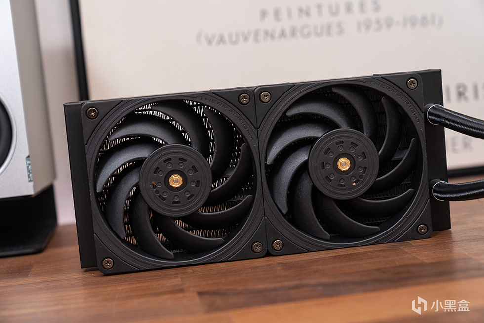 冷排风扇为利民的性能风扇TL-B12,无ARGB,采用动平衡点胶2.0工艺实现三轴动平衡矫正,使用了铁壳钢芯轴套的STABLY-FDB 磁力稳定轴承,2150RPM下可实现最大风量69CFM、风压2.87mmH2O 。