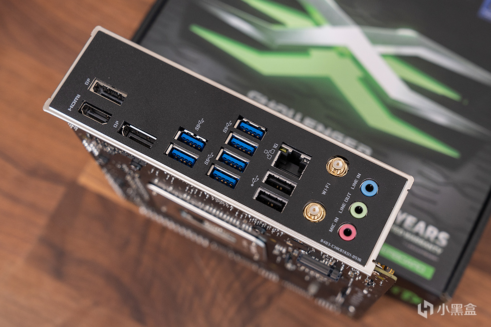 背部IO提供了2个DP 1.4接口和1个HDMI 2.0接口,最高均支持4K 60Hz的分辨率;4个 USB 10G Type-A、2个 USB 5G Type-A和2个 USB 2.0 Type-A接口;网络方面带有英特尔 i219V 1Gb Ethernet接囗和英特尔 AX101 无线网卡接口(支持Wi-Fi6与蓝牙5.2),音频方面集成REALTEK ALC897声卡芯片,提供一组音频接插口。