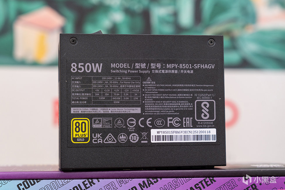 电源同样来自酷冷至尊:V SFX Gold 850 ATX3.1。标准SFX规格,ATX3.1供电标准 原生支持PCle 5.1。通过80 PLUS金牌认证,在典型负载条件下拥有 90% 以上的效率,峰值可达92%,提供10年质保服务(3年换新+7年免费维修)