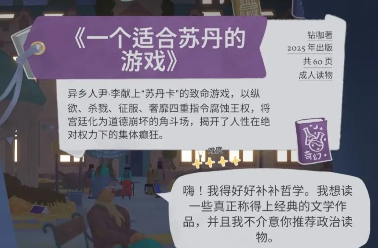 其次是游戏的玩法,游戏中虽然有点像赛博朋克酒保行动,同样是将自己心爱的物品推荐给别人,只是在这款游戏中换为了书。