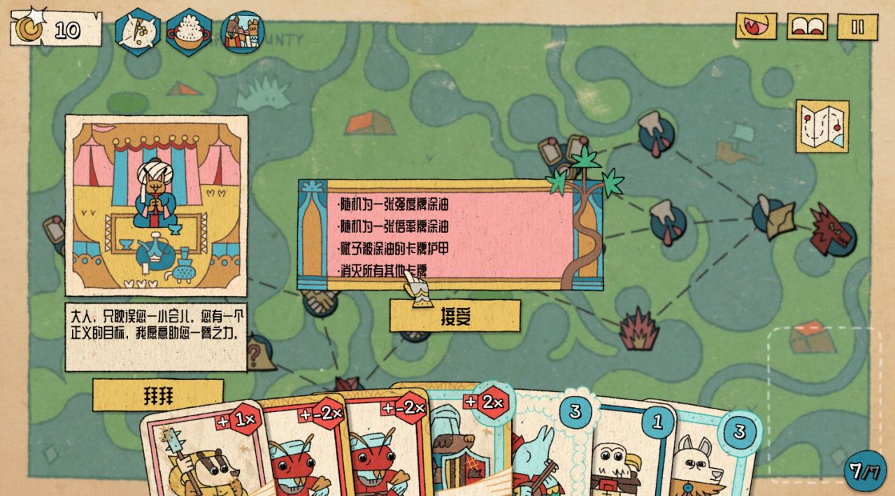 顺带其实可以说一下一款我和边境开拓者一起入手的游戏,游戏的底子非常有意思,是把空档接龙和肉鸽融合在了一起可惜的是游戏的数值设计并不算特别合理,但作为一款20多元的游戏来说,体验一下还是很值得,尤其是游戏的美术,还是很特别的。