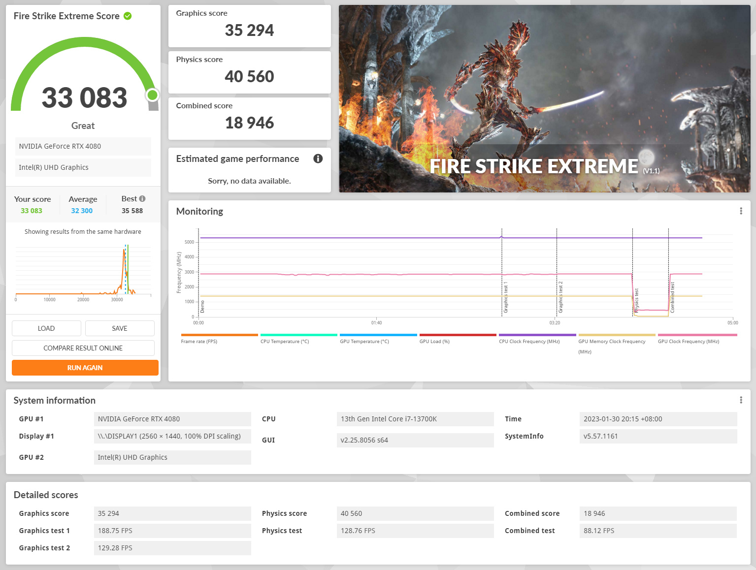 Fire Strike Extreme綜合得分33083分。
