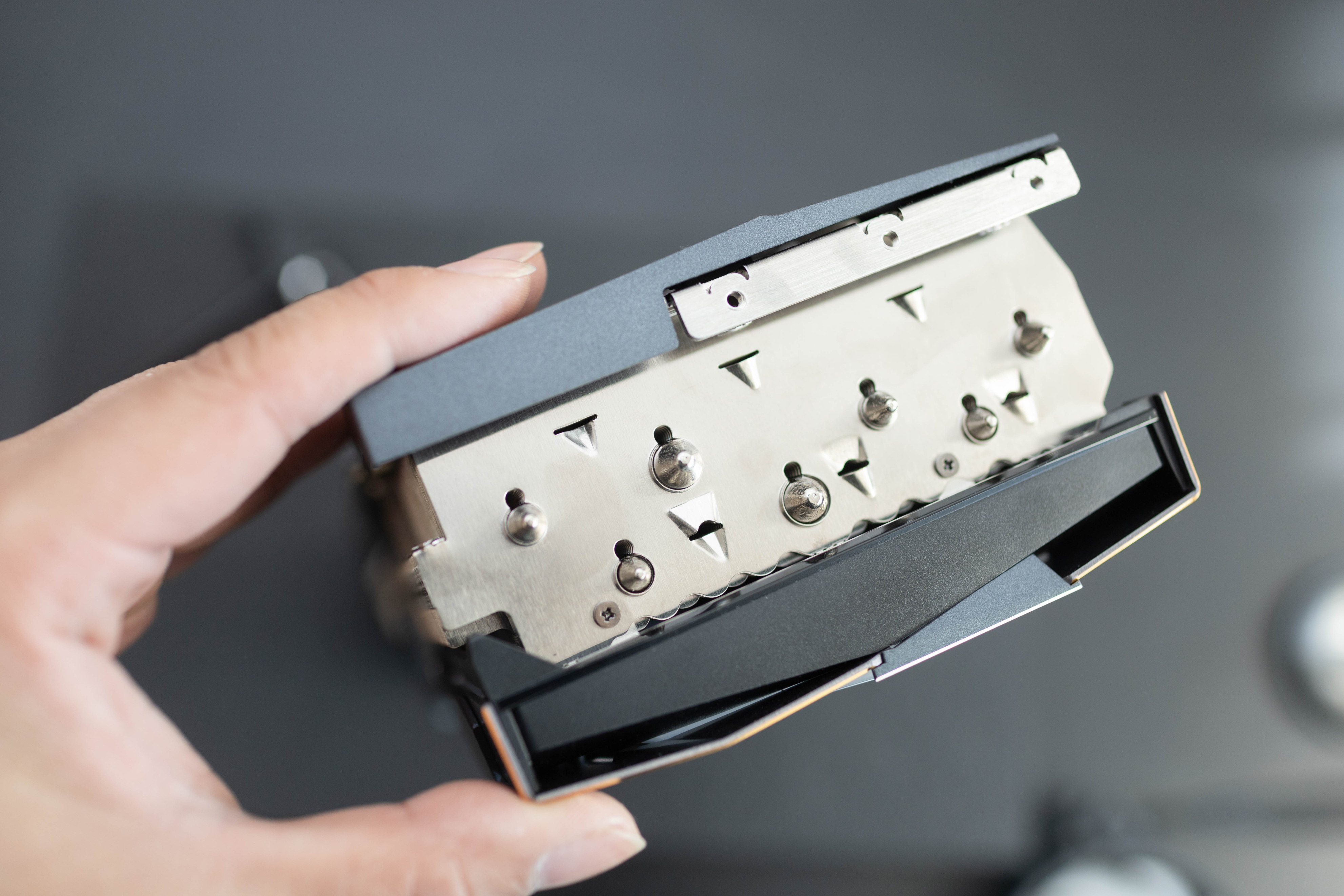 顯卡支架採用了全金屬材質,可以手動調整支撐水平角度和垂直高度,細節和做工方面都相當精緻。