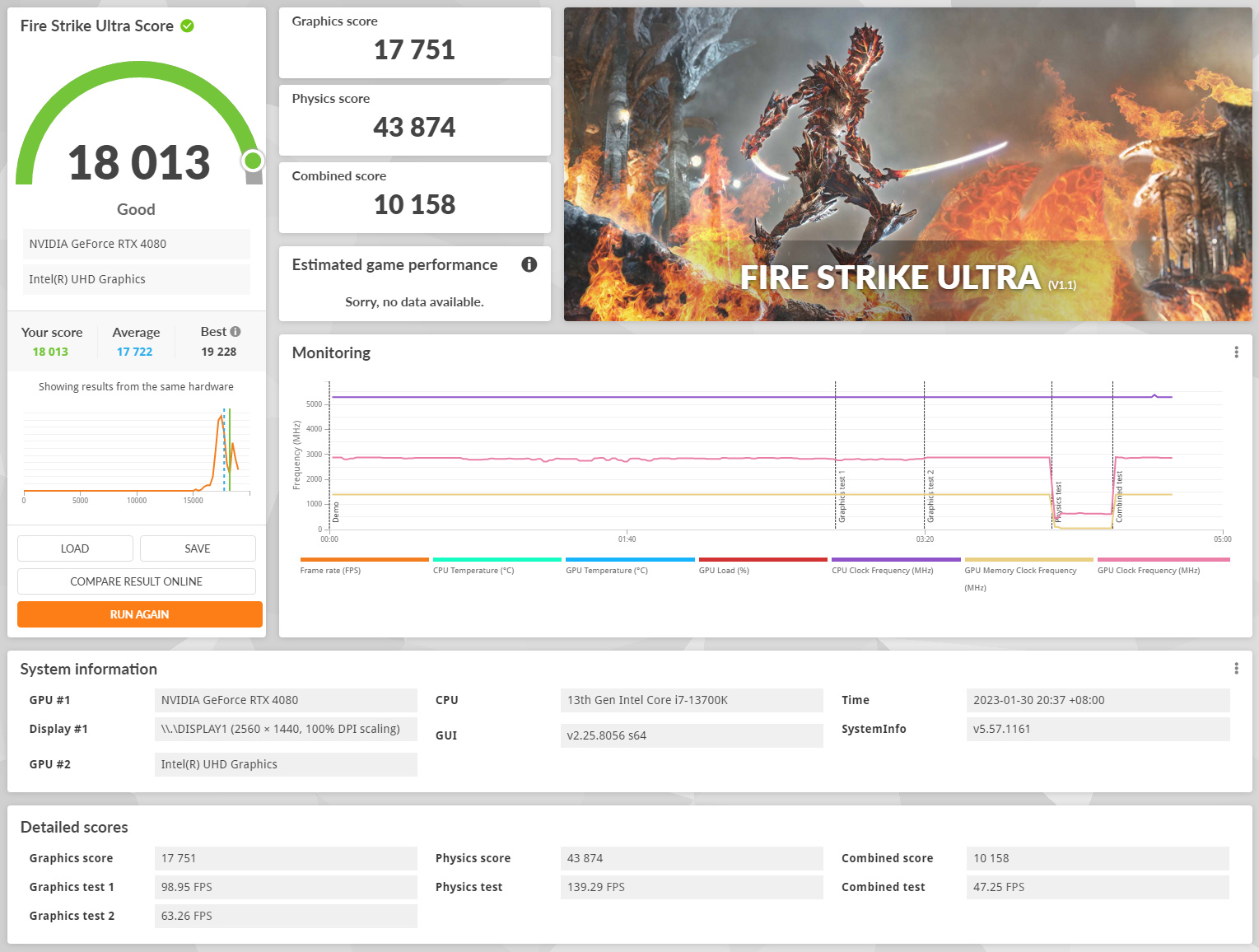 Fire Strike Ultra綜合得分18013分。