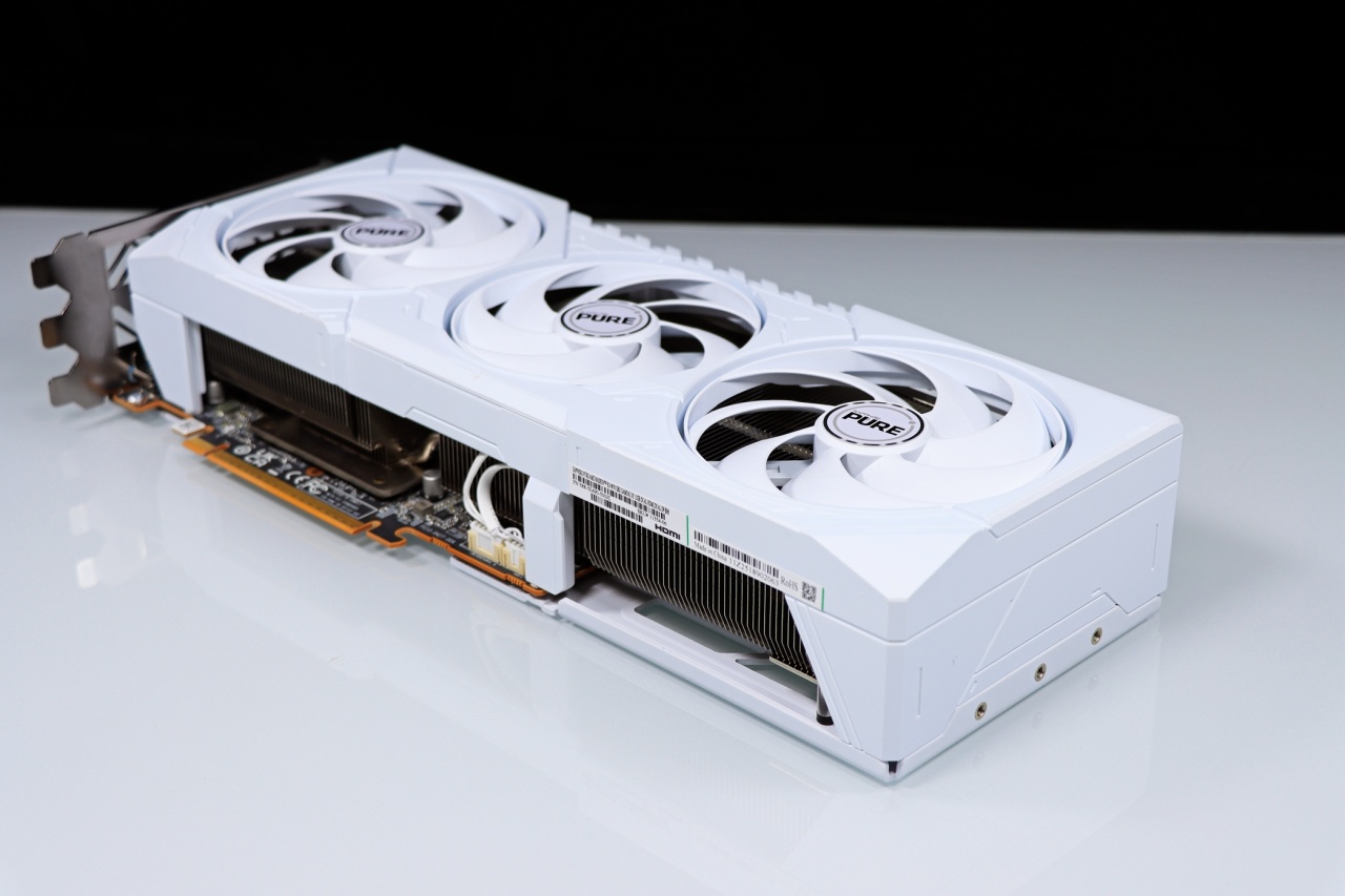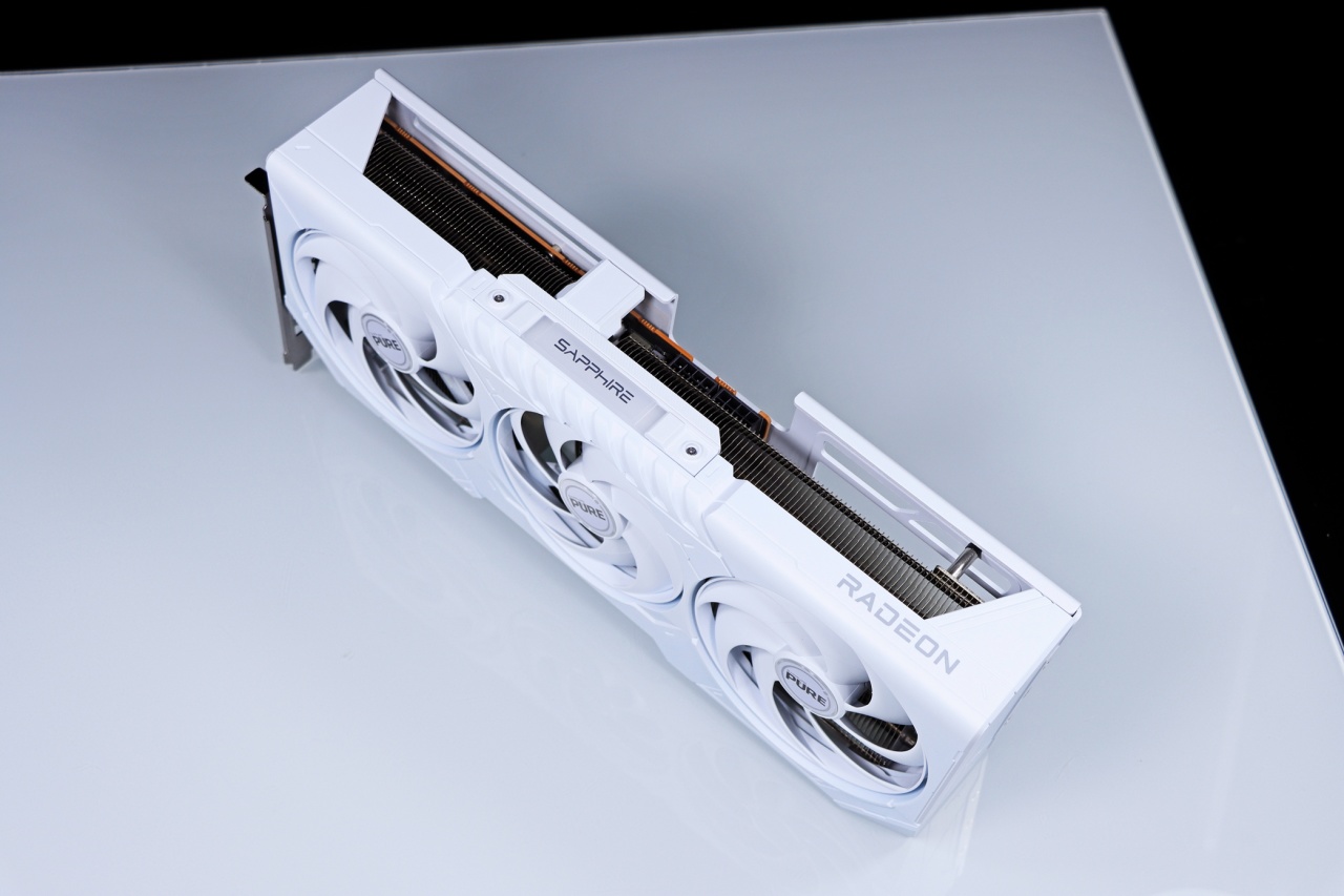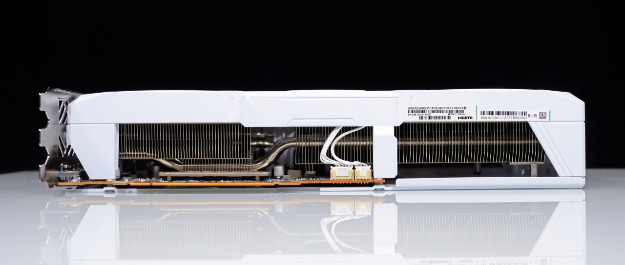▲ 蓝宝石 Radeon RX 9070 GRE 12G 极地版的造型非常紧凑,全白搭配上简约流畅的造型设计,让人爱不释手!显卡导流罩采用整体包裹式,可以更好地利用显卡散热风扇风道,让显卡运行冷又静!