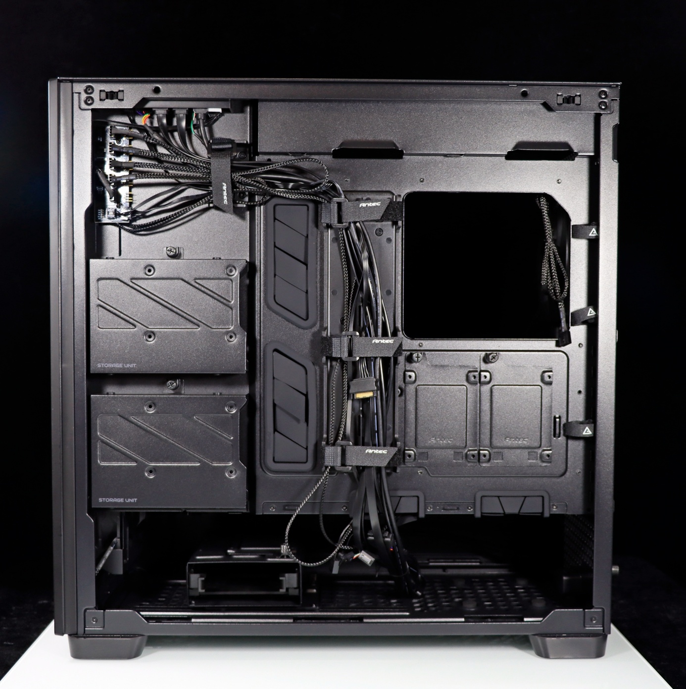 ▲ 机箱五金架构十分优秀,机箱采用模块化设计,电源仓侧面板跟电源仓顶部盖板都是可以拆卸的,方便分体式水冷用户打通所有环节,整出心中的梦中情机。