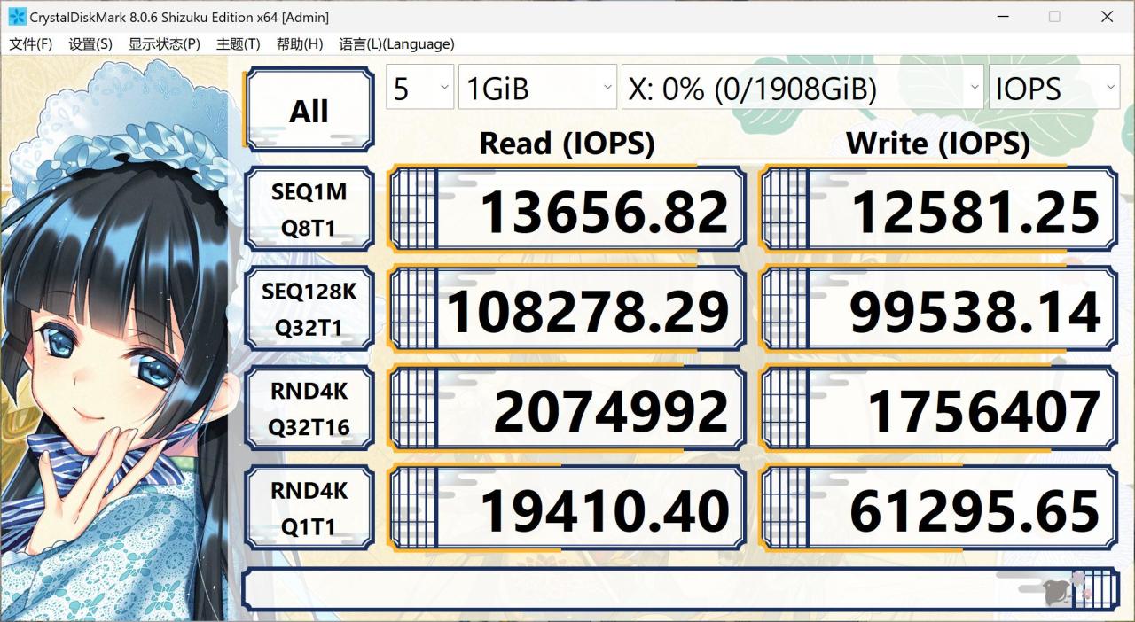 ▲ 佰维 X570 PRO 天启 2TB 的 IOPS 实测,多线程并发 4K 小文件项目上的 IOPS 达到了 2074992,这是史诗级的并发连续读写能力!