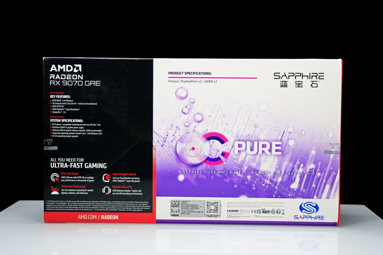 ▲ AMD Radeon RX 9070 GRE 采用的是蓝宝石的 Radeon RX 9070 GRE 12G 极地版,这张显卡的颜值非常高,而且蓝宝石是 AMD 显卡第一品牌,品质跟做工有保障!