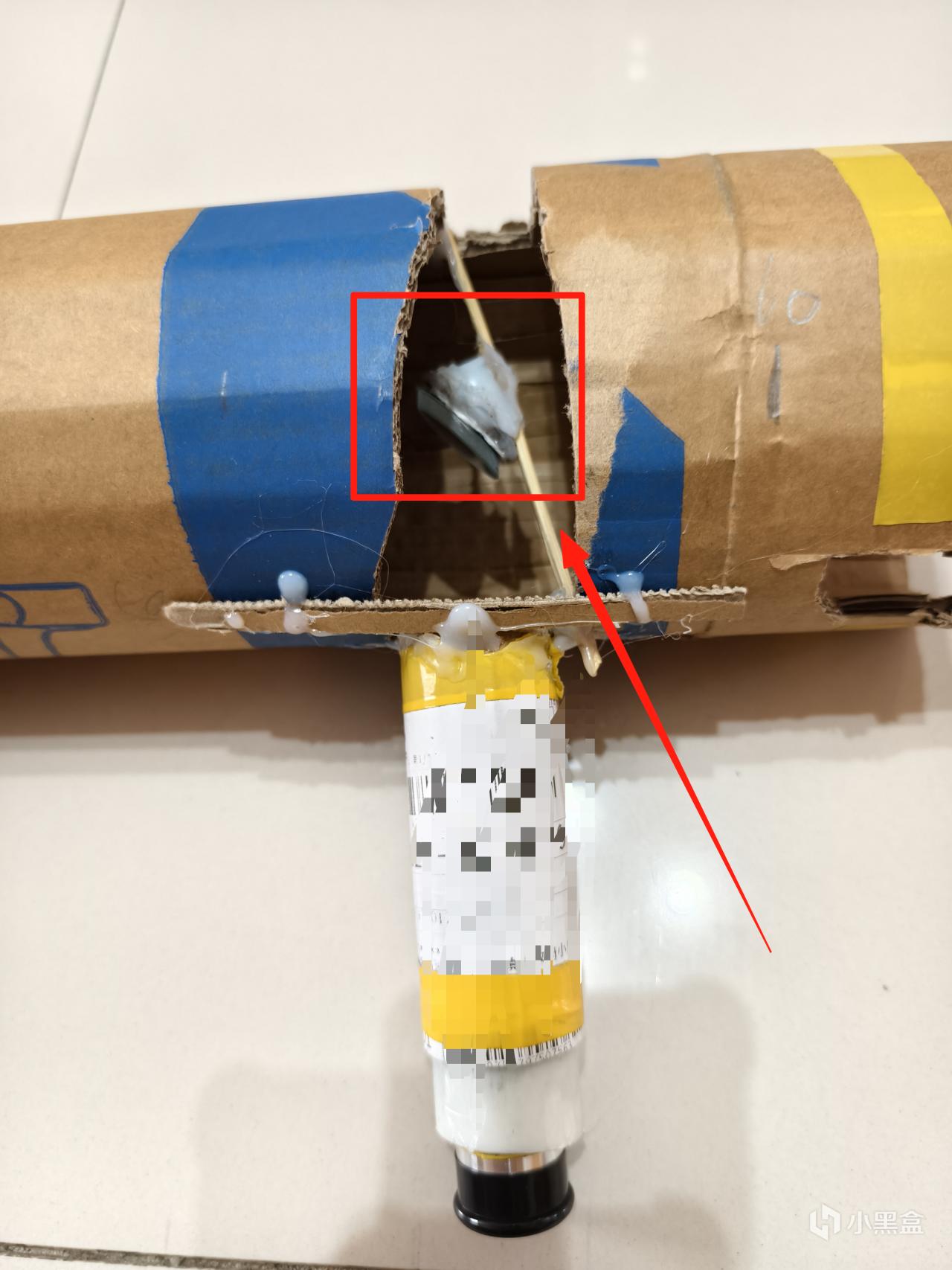装主镜:算好位置 ,主镜要固定在镜筒的一端(作为尾部),先把主镜轻轻塞进镜筒尾部,注意镀膜面朝里(对着镜筒内部),背面朝外,用尺子量一下,确保主镜边缘离镜筒尾部端面大概1cm,我这里直接用热熔胶粘的,哈哈哈长的很丑。