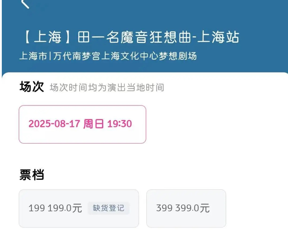 其中票价分为199元和399元两个档位,当前199元票档显示已经售罄。