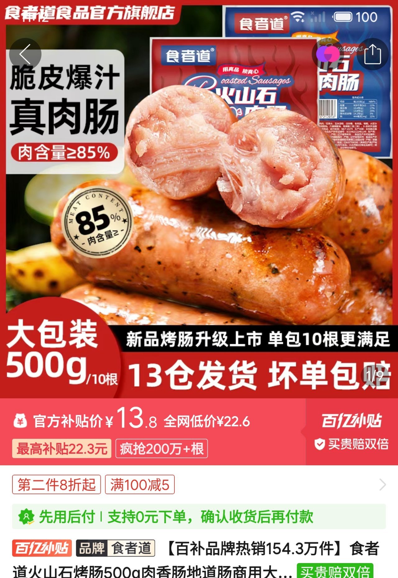 買這個的原因其實是我實習的公司前臺有賣烤腸的,但是五塊錢一根有些擊破我的底線了……所以我痛定思痛,在pdd上狠狠下單了烤腸口牙!!!!不到一塊錢一根的價格,喫起來和外邊五塊錢一根的沒區別,大肉粒,滋滋冒油。下班一烤爽絕了……再整個小果茶,直接起飛了