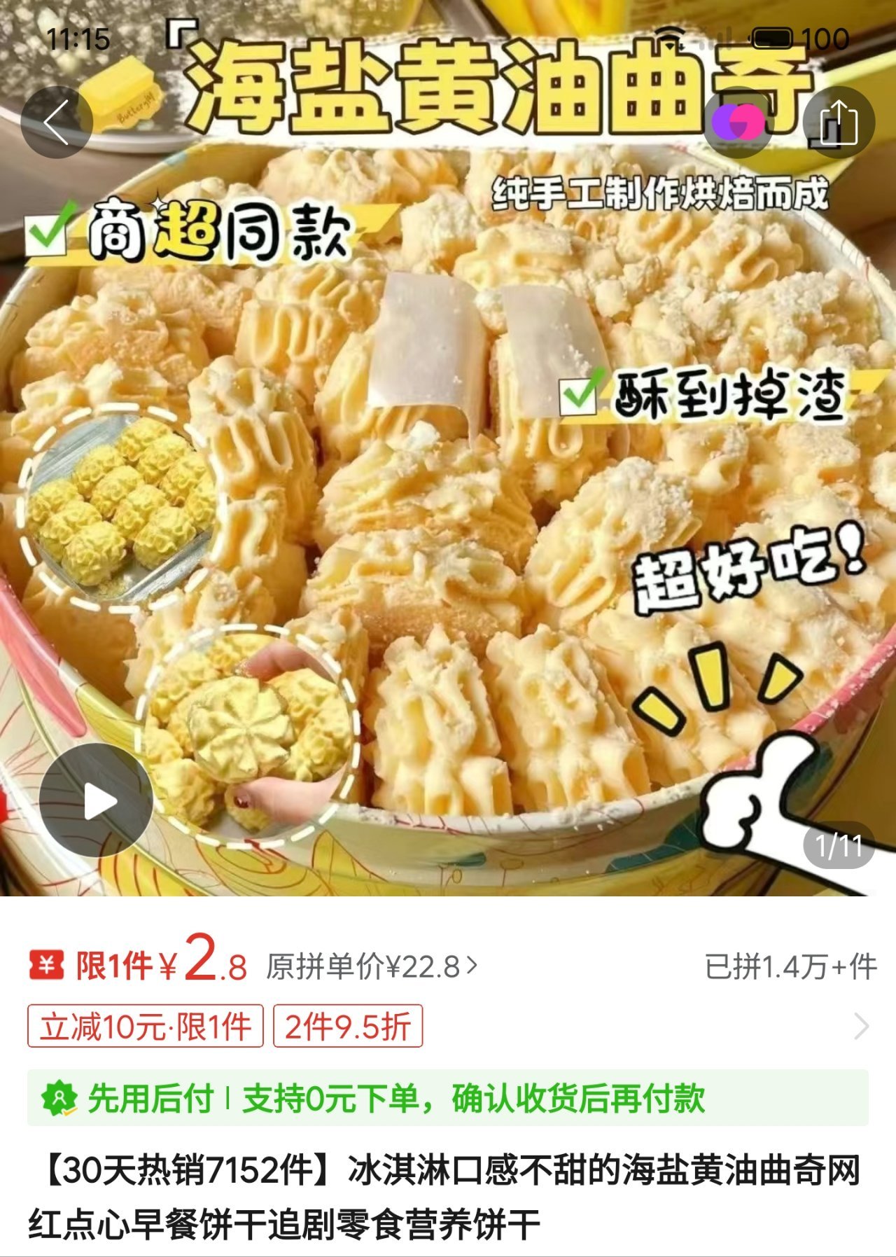 兄弟們信我,這玩意真的巨他媽好喫,鹹甜口的,整個餅乾體特別酥!!!!雖然由於太酥會導致有點碎了的情況,但是瑕不掩瑜,這玩意在我目前喫過的餅乾裏依然是T0級別的存在。我踏馬直接買了一箱酷酷喫,嘴裏嚼着這種小餅乾的時候感覺幸福得要爆炸了..這個是真好喫,無論是在辦公室還是在家喫的都好喫()