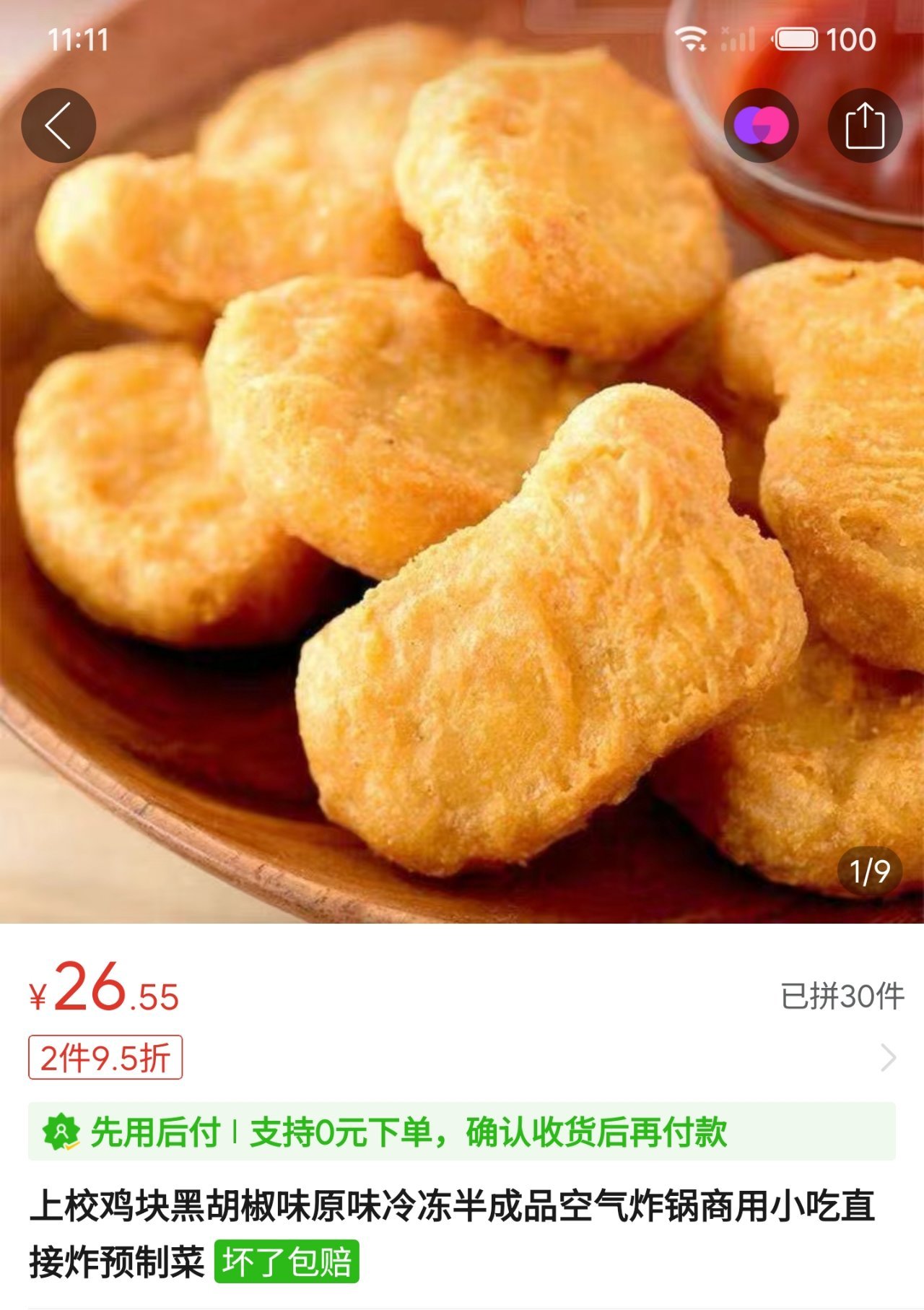 當我以這個價格買到它並且還是順豐包郵的時候,我已經不在乎它的口感像不像上校雞塊了。更何況如果空氣炸鍋火候剛好的話,其實喫起來只比上校雞塊粉了一點點。我們家的習慣不喜歡在家裏放這種預製炸的東西之類的,所以這是我第一次在家裏製作出香香雞。好喫……