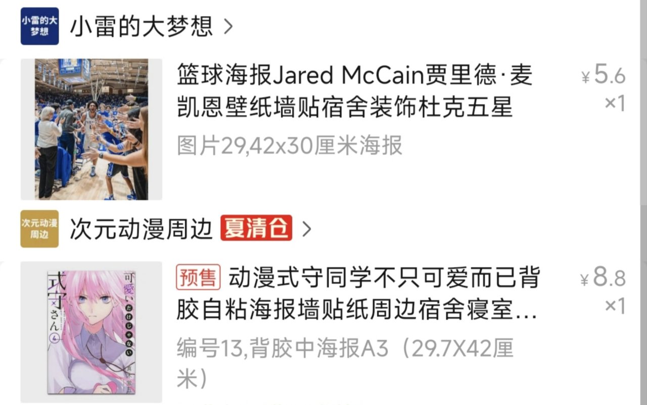 我喜欢动漫和篮球,所以买了很多与之相关的海报