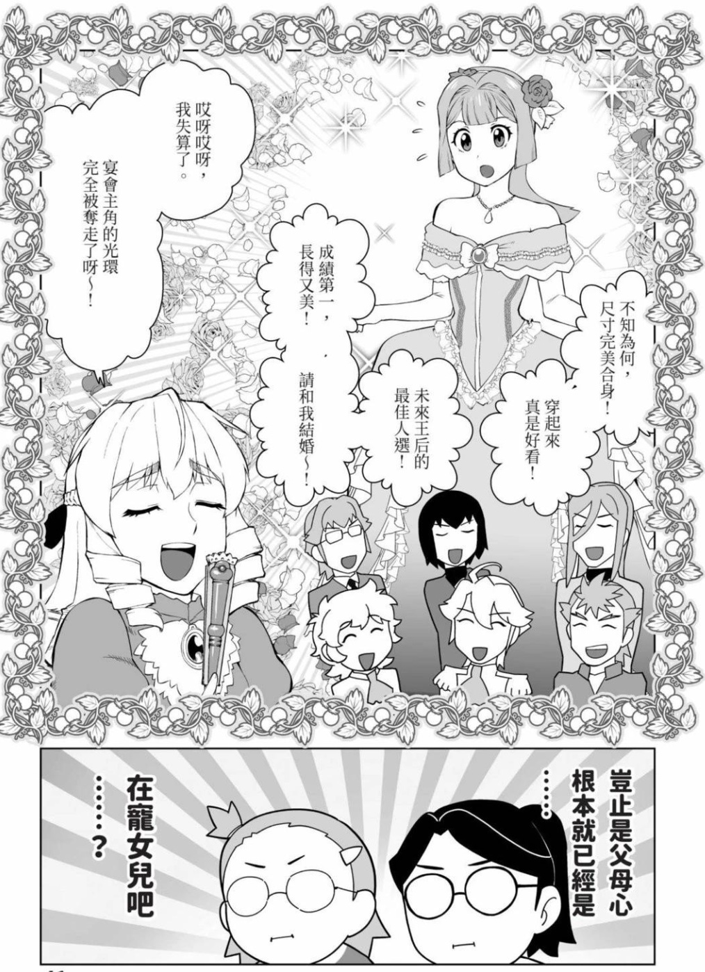 就比如,为了合理化大叔灵魂如何做出符合上流千金的礼仪举止,漫画里打了一个设定上的补丁——“优雅转换”。只要大叔做出合乎身份礼数的行为,接受过贵族礼仪熏陶的这具身体就会自然地做出淑女礼数。