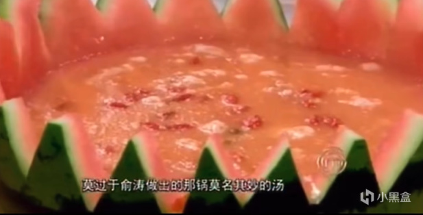 俞濤呢?他選擇的是自己以往從未嘗試過的“西瓜羹”——將西瓜瓤、瘦肉和枸杞按照先後順序加入鍋中燉煮,然後盛放在西瓜皮當中。