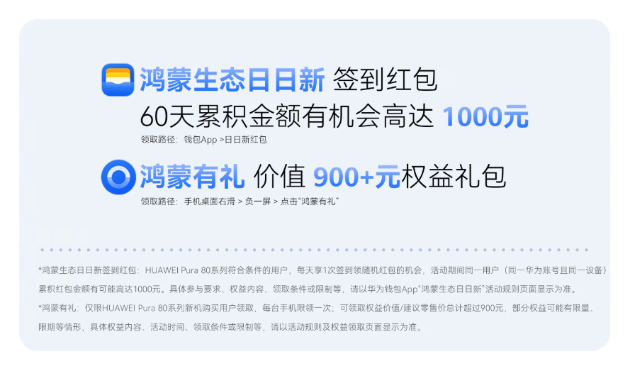 对消费也有日日新红包和鸿蒙有礼物权益礼包