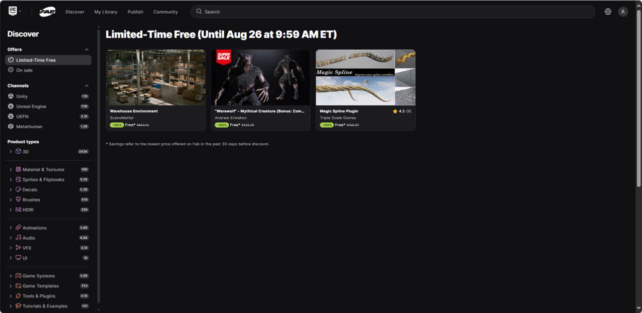 EPIC商城 > Unreal Engine(虛幻引擎)> Fab >Start exploring > Fab官網