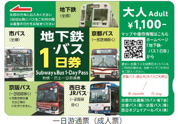 京都也有一日券,性价比相对低一点,而且不能使用京都地下铁和公交以外的交通方式,不过买了至少不会亏这张券可以在地铁站、市营巴士地铁问询处、公交车上买到