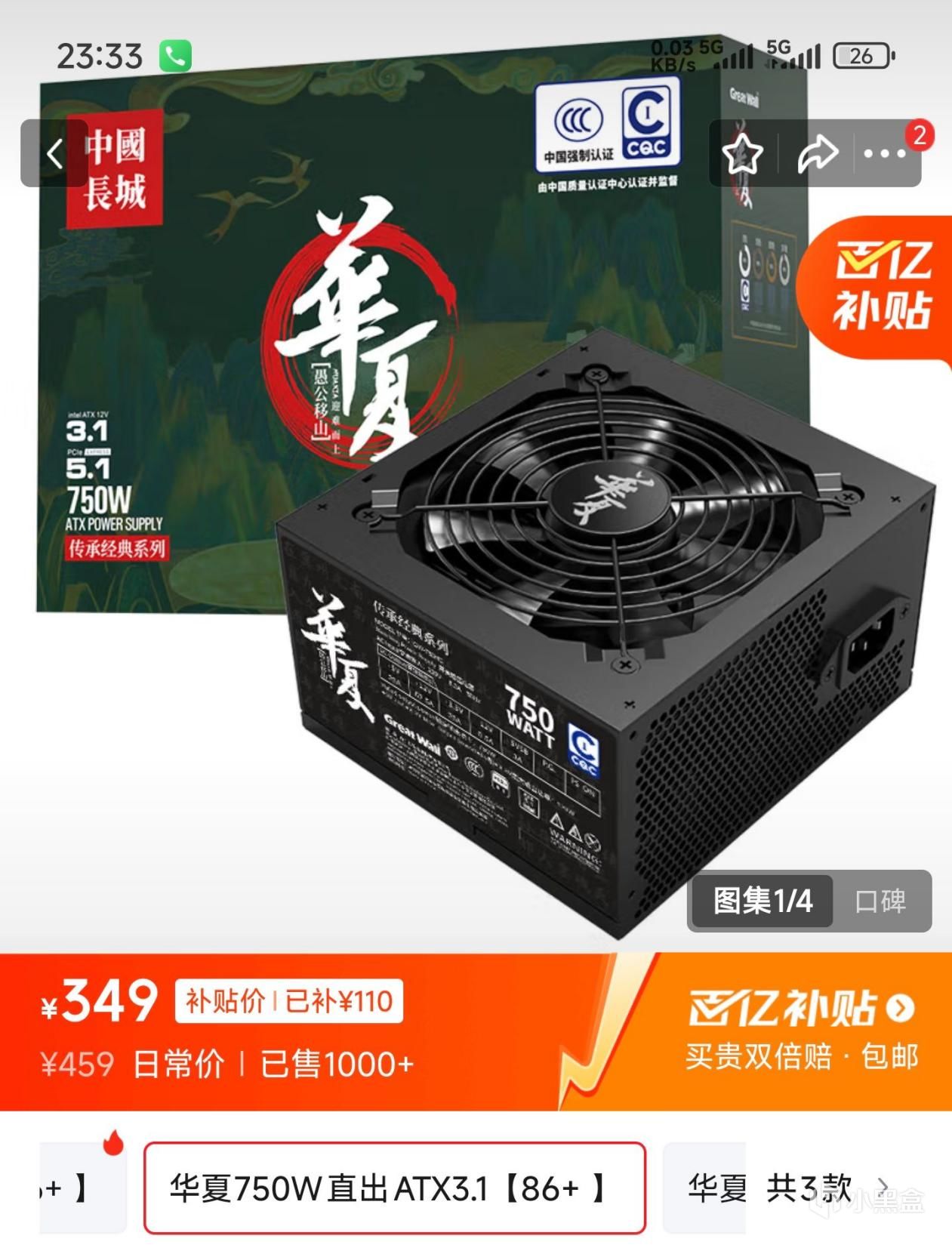 但爲了後續主機的升級空間,我最終留了250w的餘量,入手了這款長城華夏傳承750w的電源。