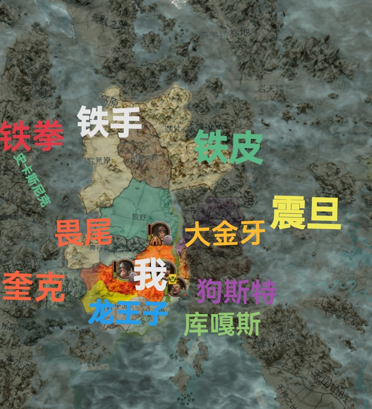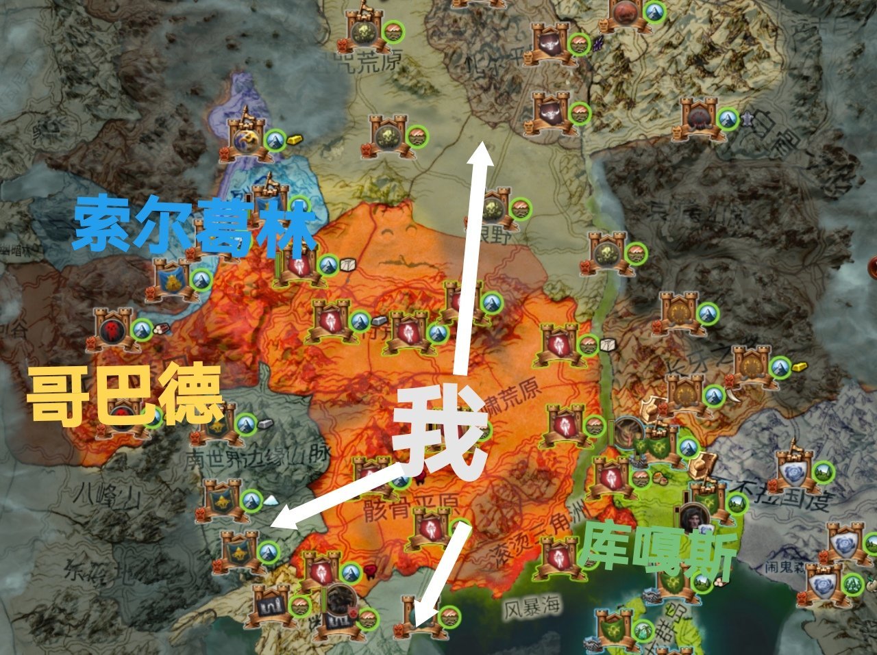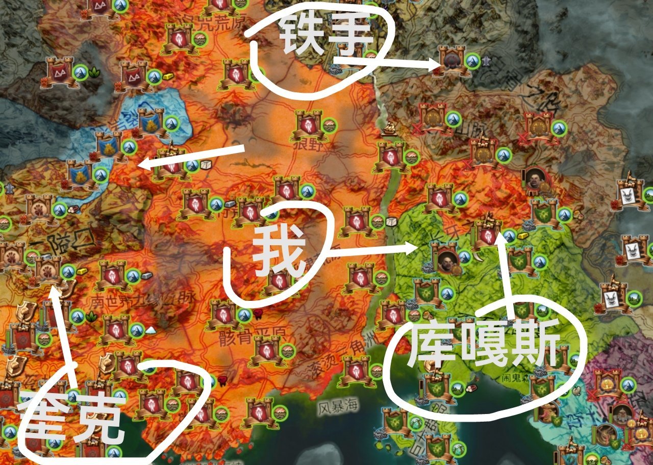 位于大地图中央地带,位置不太好,左右都是敌人,只有纳垢的【库嘎斯】是潜在盟友。