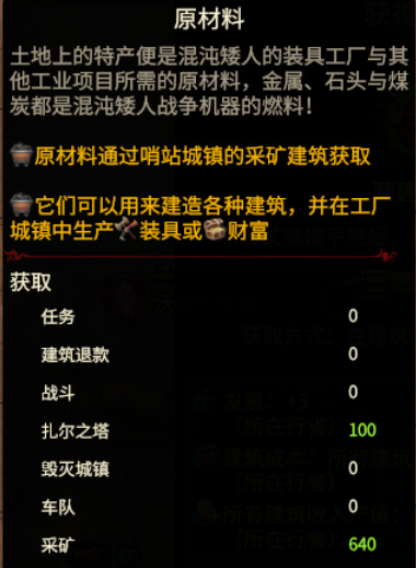 「原材料」可以通过哨站建筑生产、毁灭城镇来获得,是建筑建造和发展科技的必须材料,甚至比金钱还重要。
