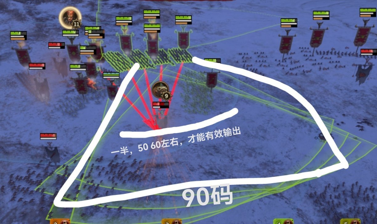 依然集火敌方单体。虽然混矮的远程「雷铳」射距90,输出可怕,但得在射程里一半的距离才能打出来,越远输出越低效。(控制在50 60码左右是最佳。)