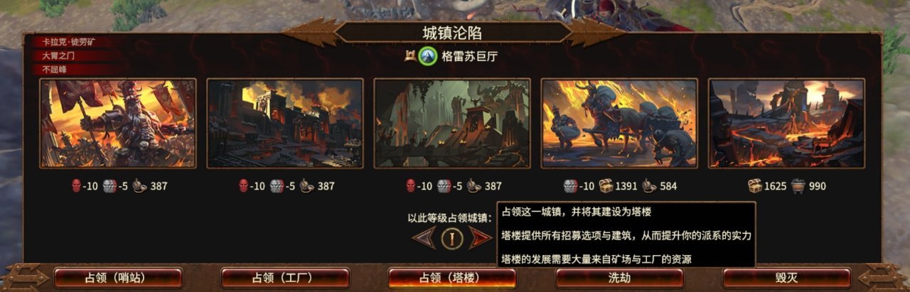 「塔楼」只有每个省的主城才能建造;有特殊地标的城镇建议选择「工厂」,其它的都建造「哨站」。