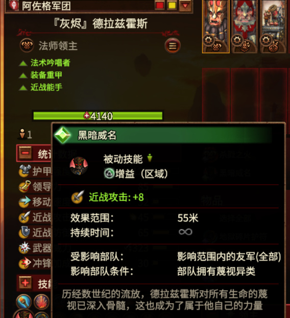 【灰烬】是「黑色要塞」的主人,强大的「阿佐格军团」首领。在混沌侵蚀的「黑暗之地」扎根,他是个渴望力量的扭曲造物,也是个极为强大的术士。