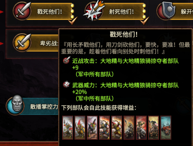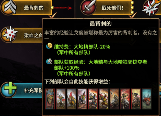 包含军中所有地精部队的维持费减少,获取经验值加倍;