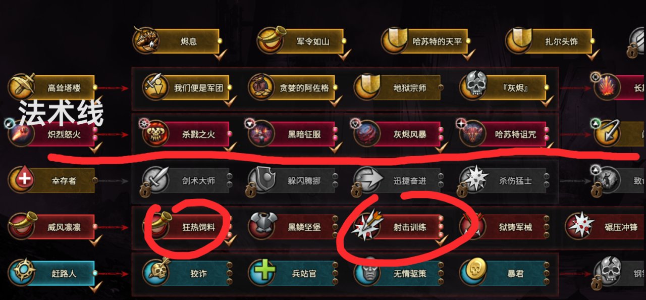 灰烬自身是强大的肉坦法师,以「法术线」为主,「军事线」以地精近战加成和远程部队加成为辅。
