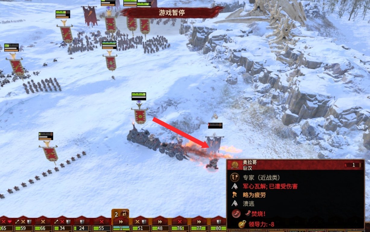 「食人魔」的部队特点是“”重质量、怪步、怪巨绞肉机”。咱们骑兵最多只冲的动孬不拉炮灰,而食人魔本族基本都要反冲锋的特性,所以骑兵这次就在后面支援就行了。